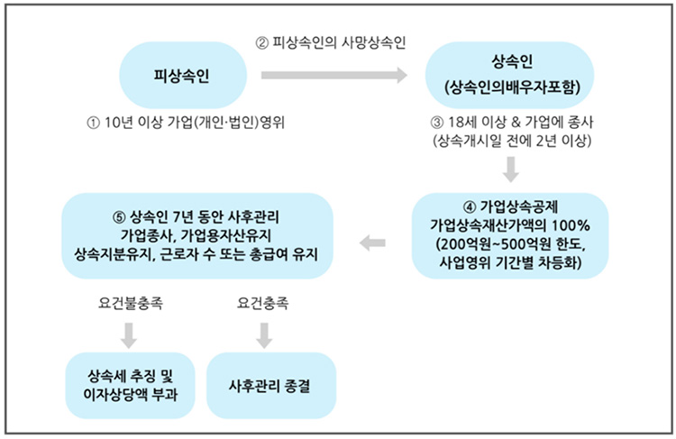 상속공제 중 '가업상속공제'란 중소기업 등의 원활한 가업승계를 지원하기 위하여 거주자인 피상속인이 생전에 10년 이상 영위한 중소기업 등을 상속인에게 정상적으로 승계한 경우에 최대 500억원까지 상속공제를 하여 가업승계에 따른 상속세 부담을 크게 경감시켜주는 제도를 말합니다. (상속세 및 증여세법 §18 2)
